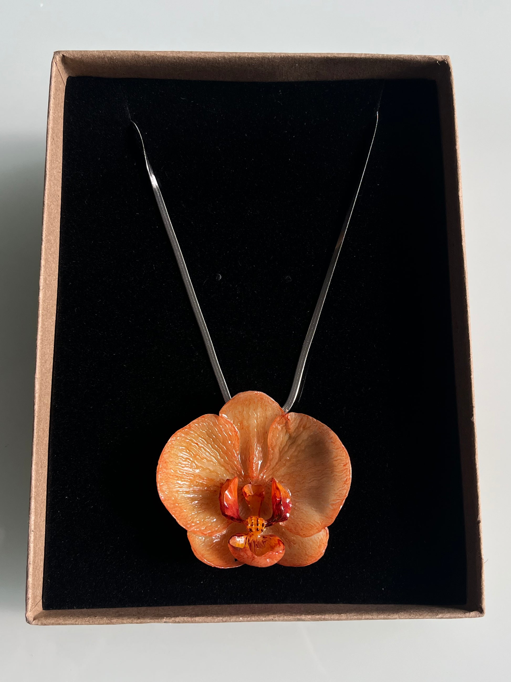 Pintamos cada Orquídea a mano, por lo que puede presentar pequeñas variaciones en el color, lo que hace que cada una de ellas sea original e única. Una pieza de artesanía única hecha con dedicación que le da un toque elegante a cualquier look.